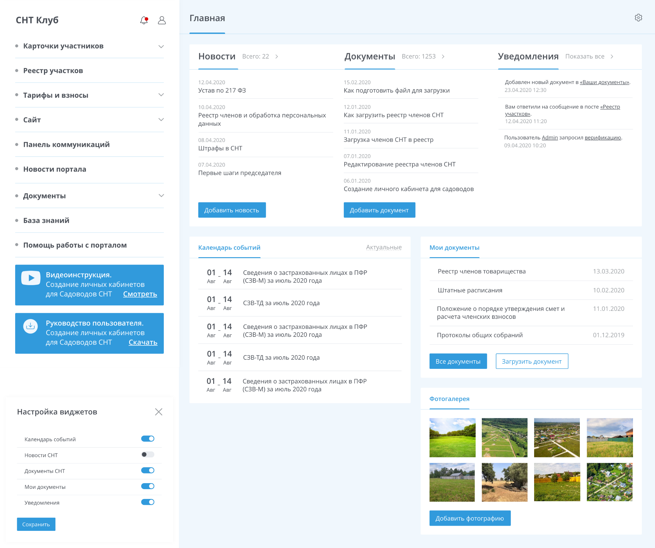 Представляет собой удобный личный кабинет для каждого участника СНТ, где собрана вместе вся актуальная и необходимая информация.