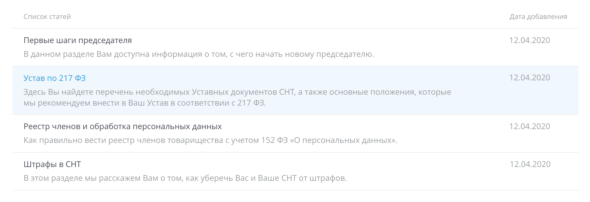 Специальный раздел, созданный для хранения и представления по запросу юридических и организационно-правовых документов СНТ: простая и удобная в использовании система каталогов.