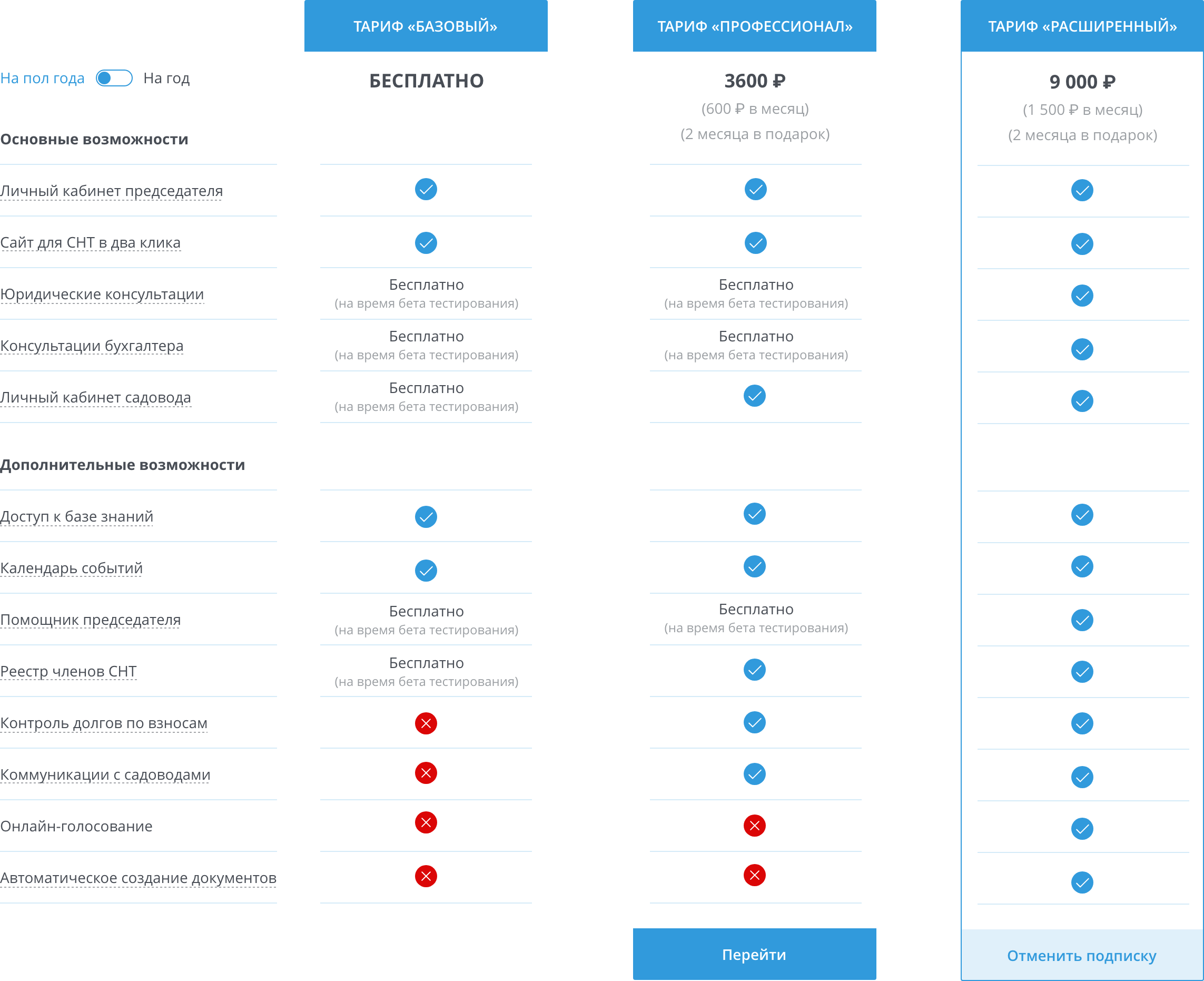 Наглядное отображение услуг и тарифных планов с помощью колоночной системы. Минималистичный дизайн обеспечивает эстетичность и соответствие общему стилю сервиса, делая информацию легко воспринимаемой для пользователей.