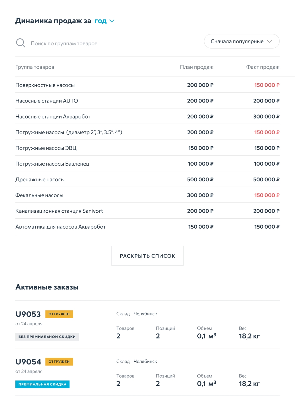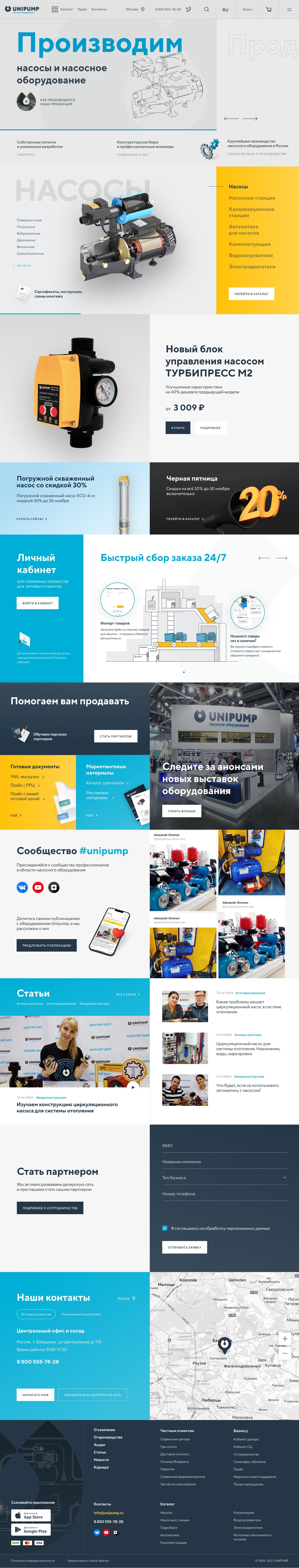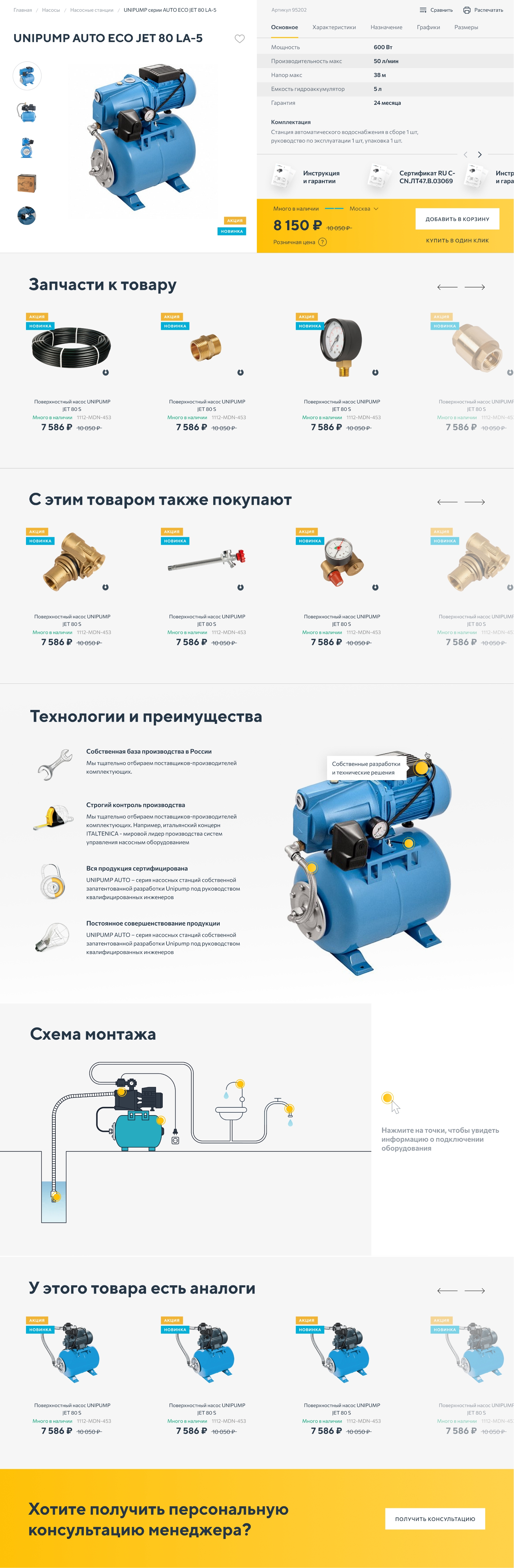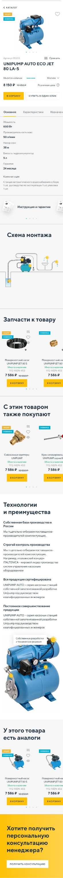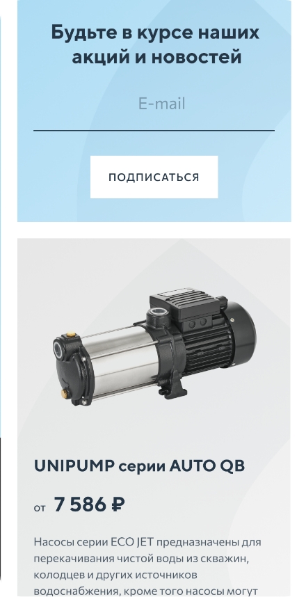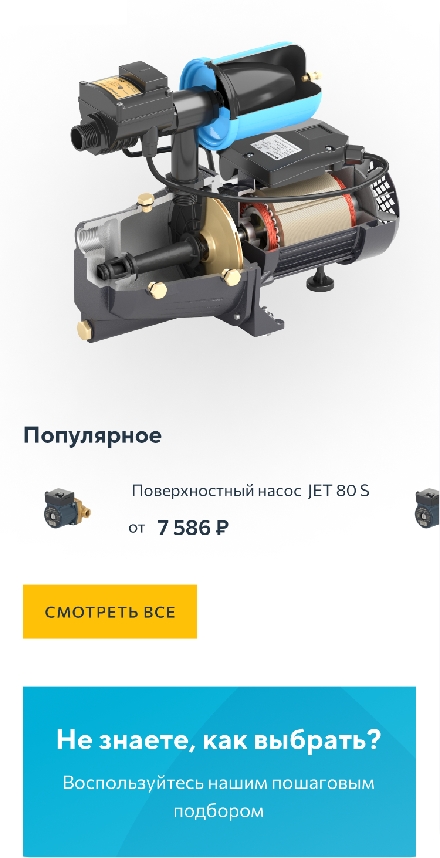 Отображение всех категорий и подкатегорий каталога. Первой категорией демонстрируются насосы.