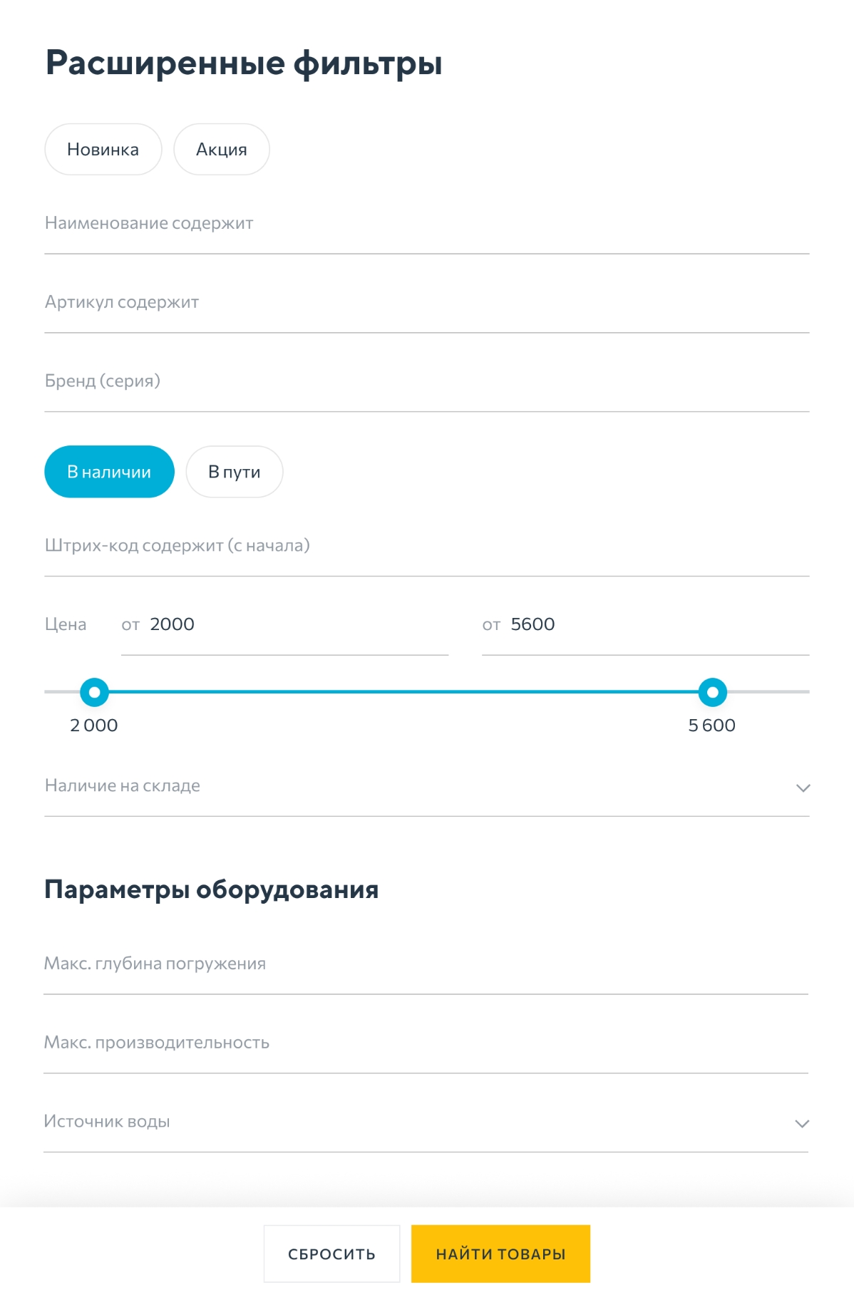 На лету применяет все указываемые пользователем критерии отбора сразу по факту выбора, с достаточно большим набором характеристик.