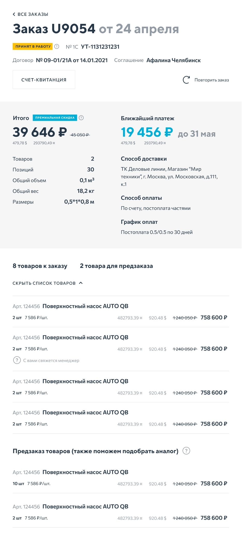- информация о договорах и соглашениях клиента и их актуальных статусах;